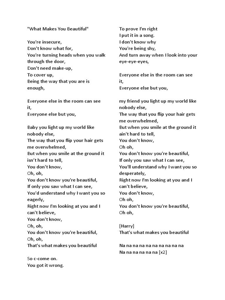 What Makes You Beautiful One Direction Esl Worksheet By Agostine